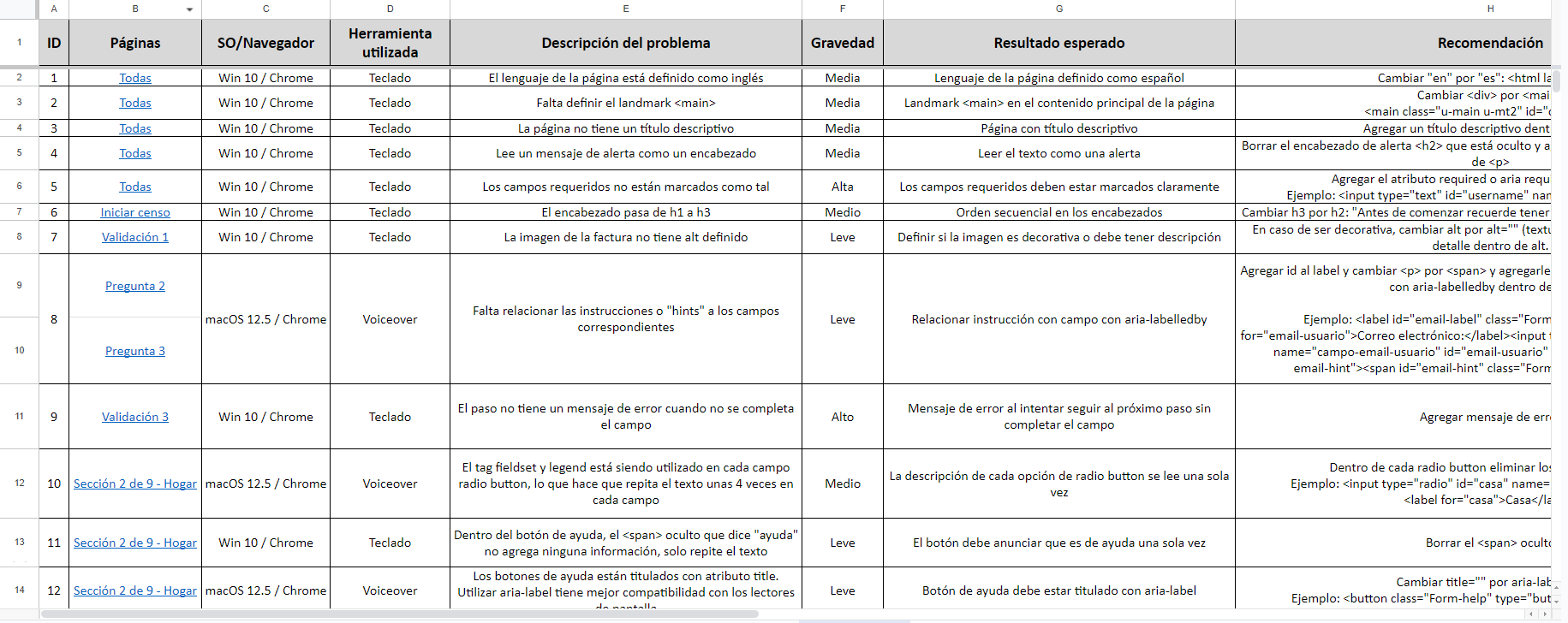 The final report was sent with follow-up meetings scheduled to clarify findings and solutions. The report identified errors, particularly in the application of code within form fields. A post-remediation analysis was conducted by specialized accessibility testers to ensure that all issues were effectively resolved.